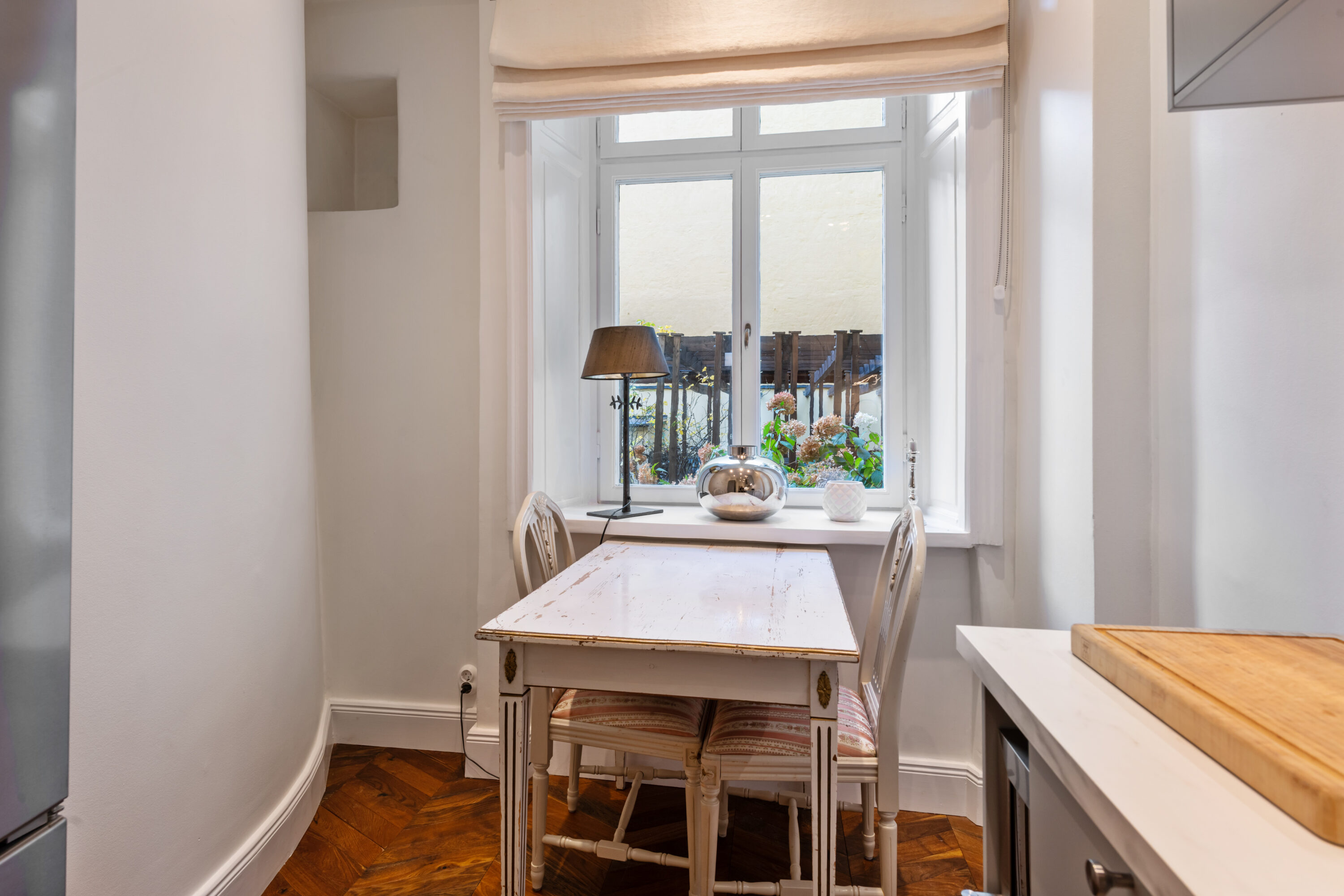 Smakfull tvåa om ca 52 kvm där klassiska originaldetaljer möter moderna materialval.