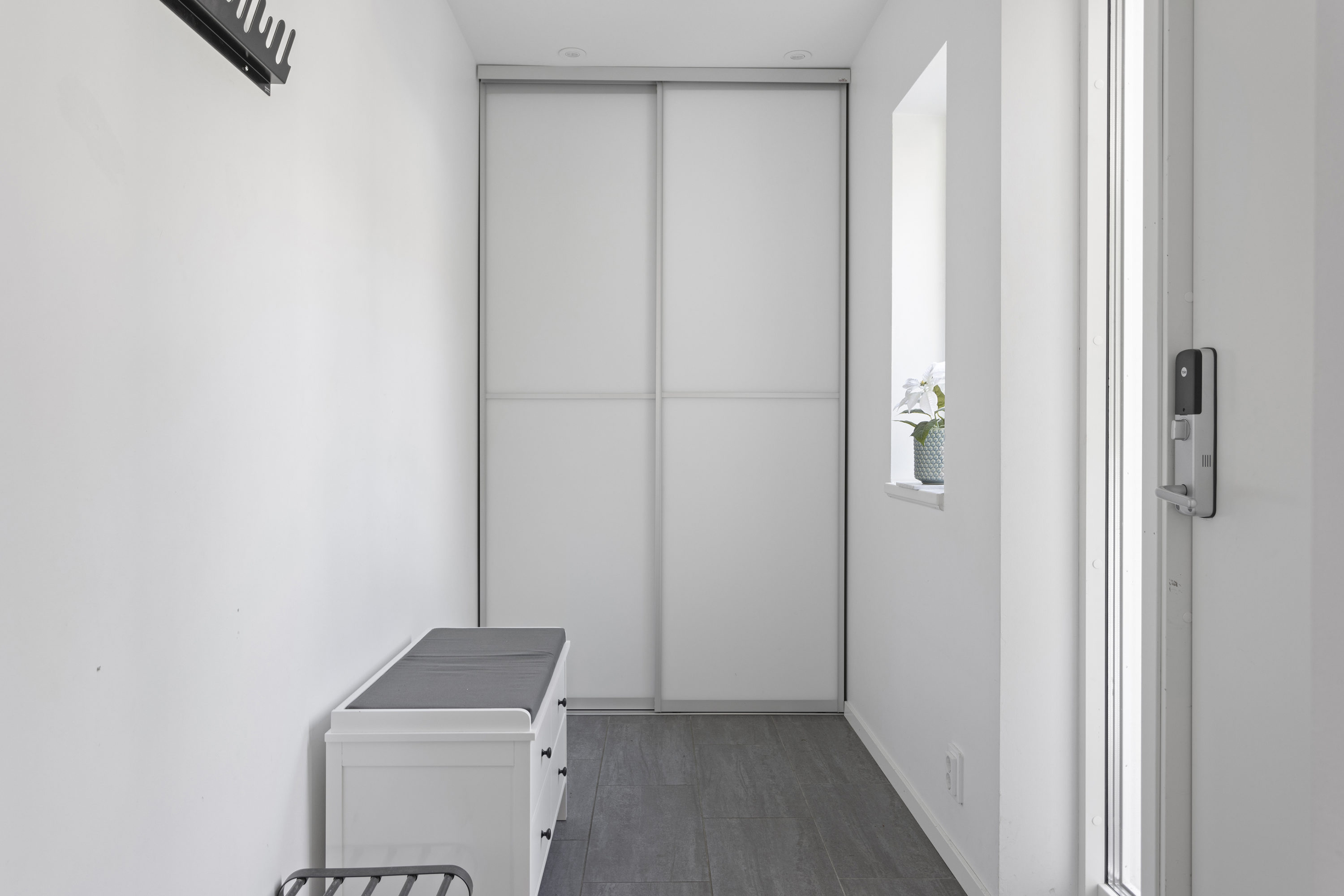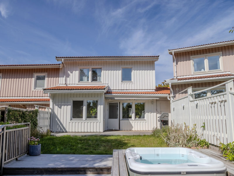 Welcome to this terraced house in Enebyberg. The house is optimally designed with a spacious hallway that offers plenty of space for coats and shoes right at the entrance. On the ground floor, there is a bedroom and a bathroom, along with a newly renovated kitchen that opens up to a dining area and living room in an open floor plan. From here, you also have access to a private patio and garden. The patio features a large terrace with a grill and a hot tub.