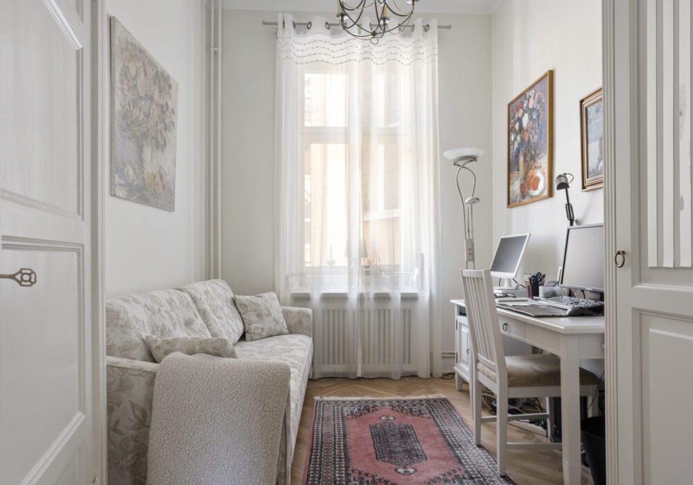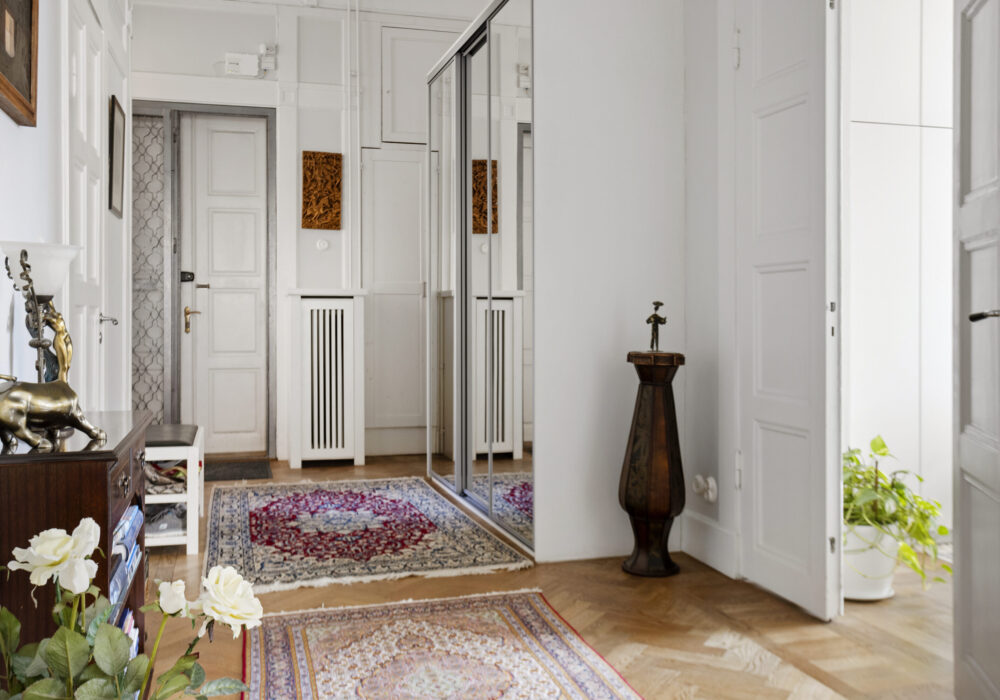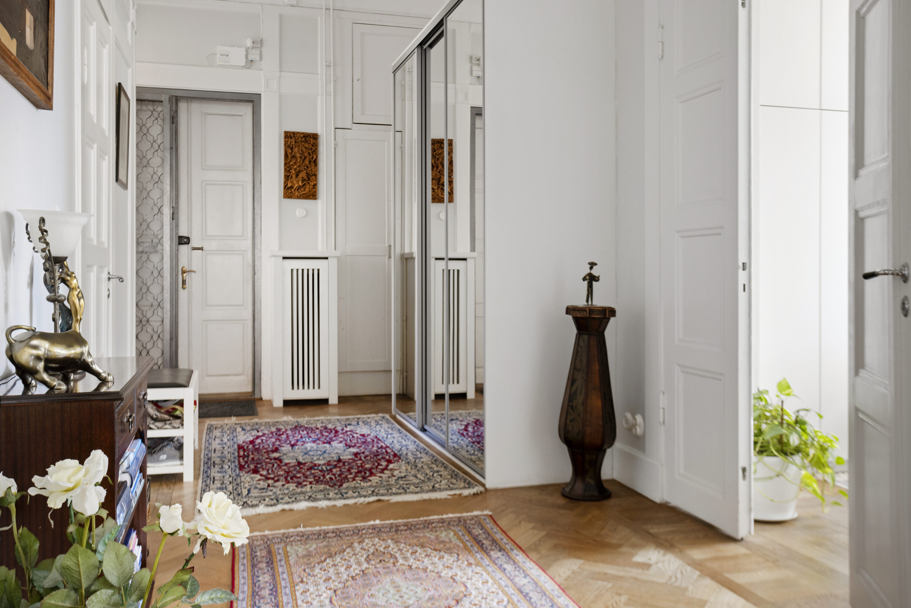 Bright and spacious turn-of-the-century apartment of 143 square meters with many beautiful original details! The apartment has generous ceiling height, large windows, and a floor plan that combines charm with function. There are four rooms and a kitchen, of which two are large bedrooms and two are living rooms in a row.