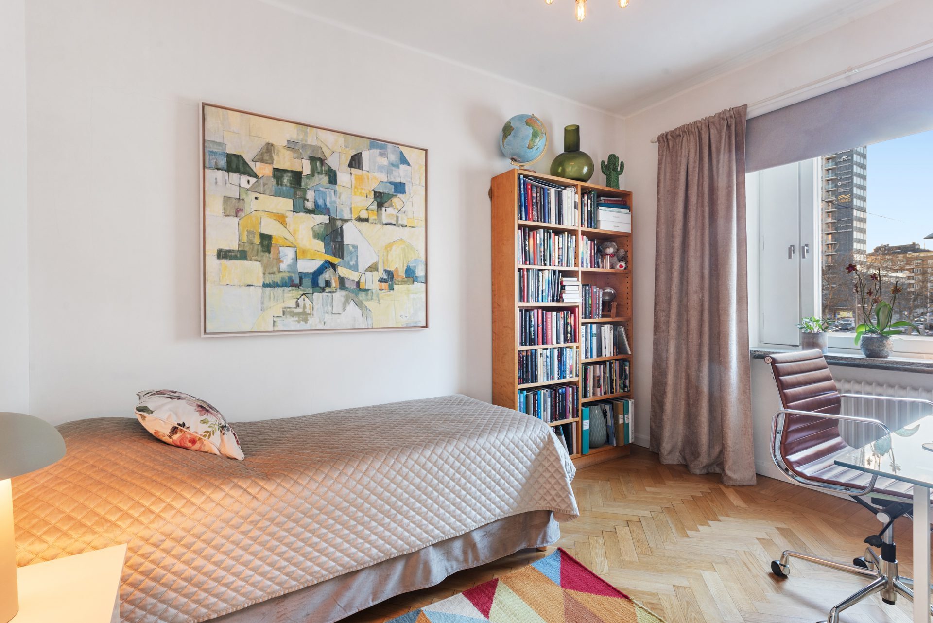 Från denna adress på Gjörwellsgatan bor du med Stockholms stadsvyer runt knuten och med