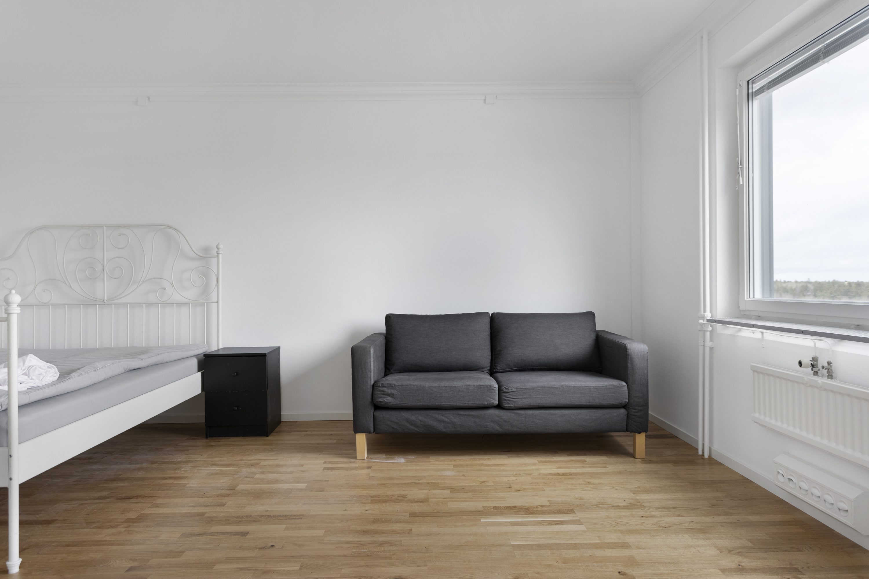 Här finns gott om plats för en dubbelsäng och förvaring.