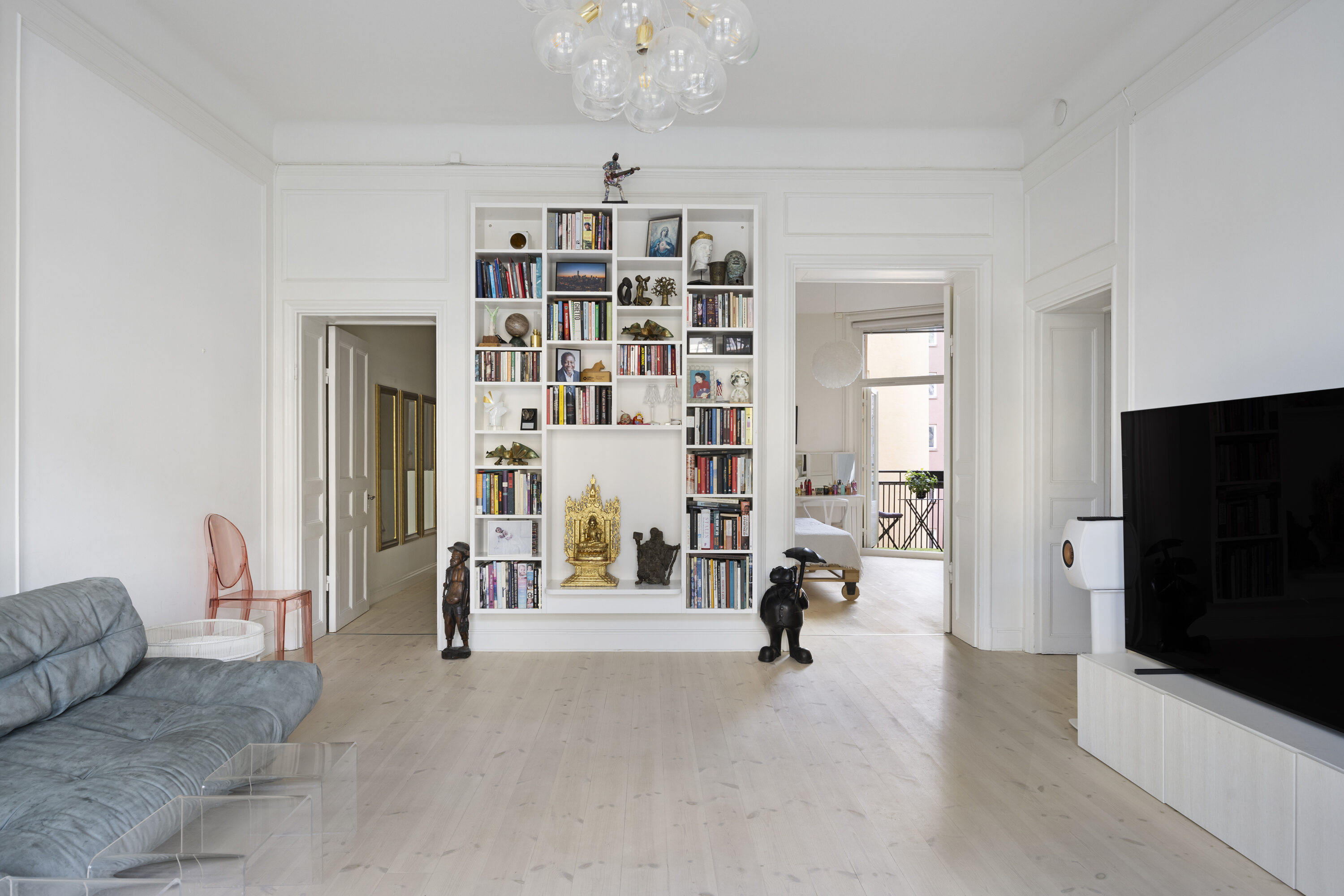 Bostaden har en genomtänkt och generös planlösning med tre sovrum, ett stort vardagsrum