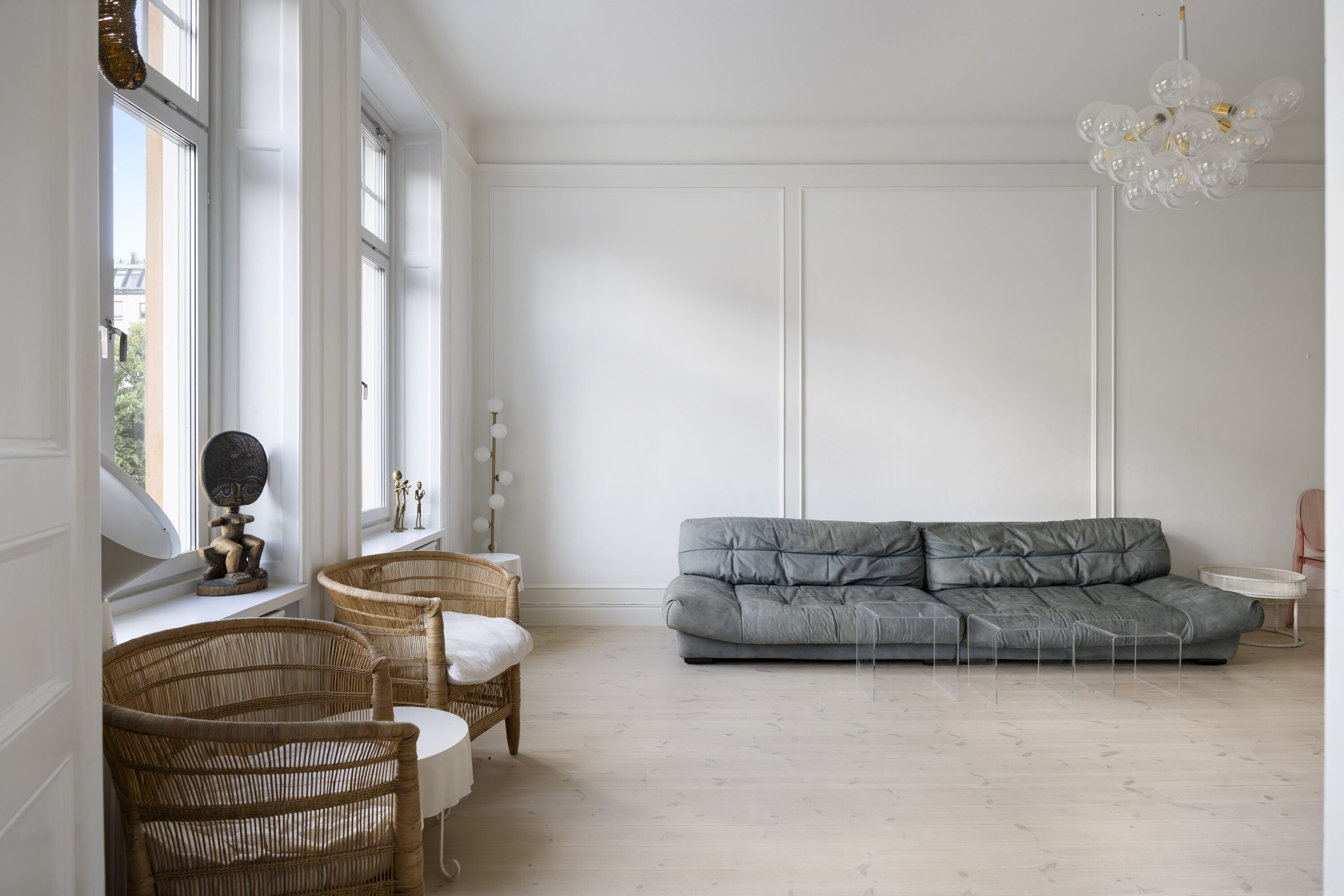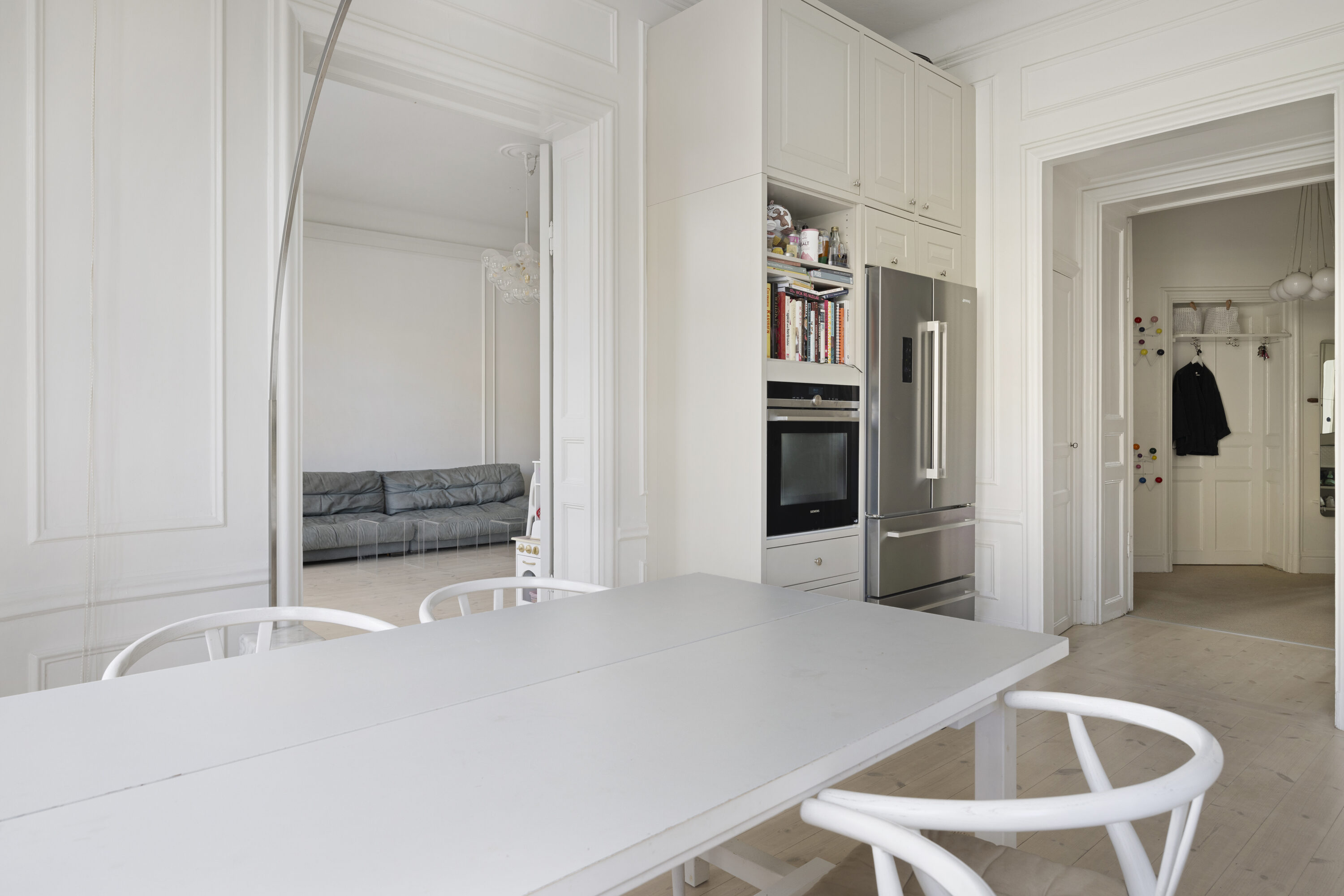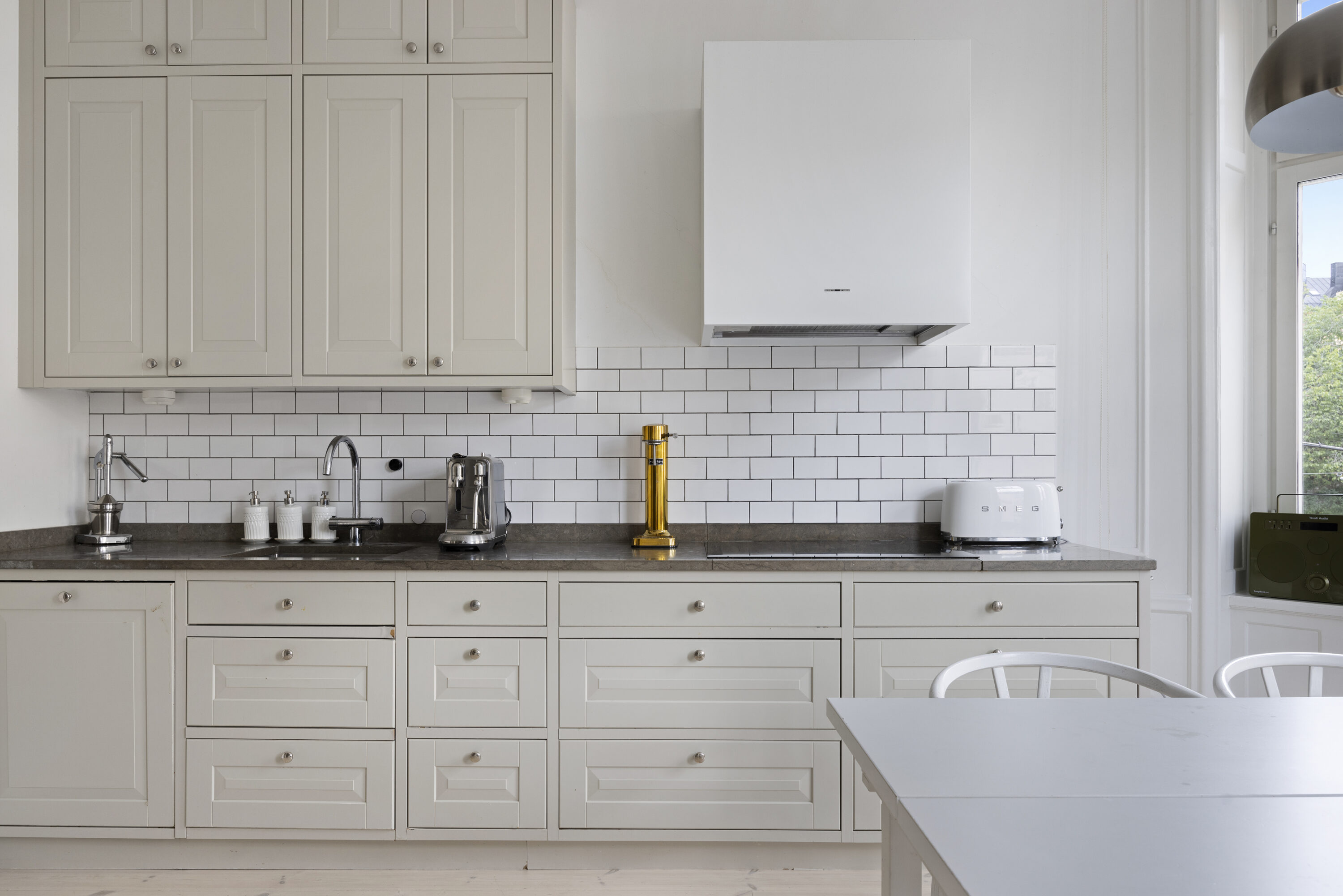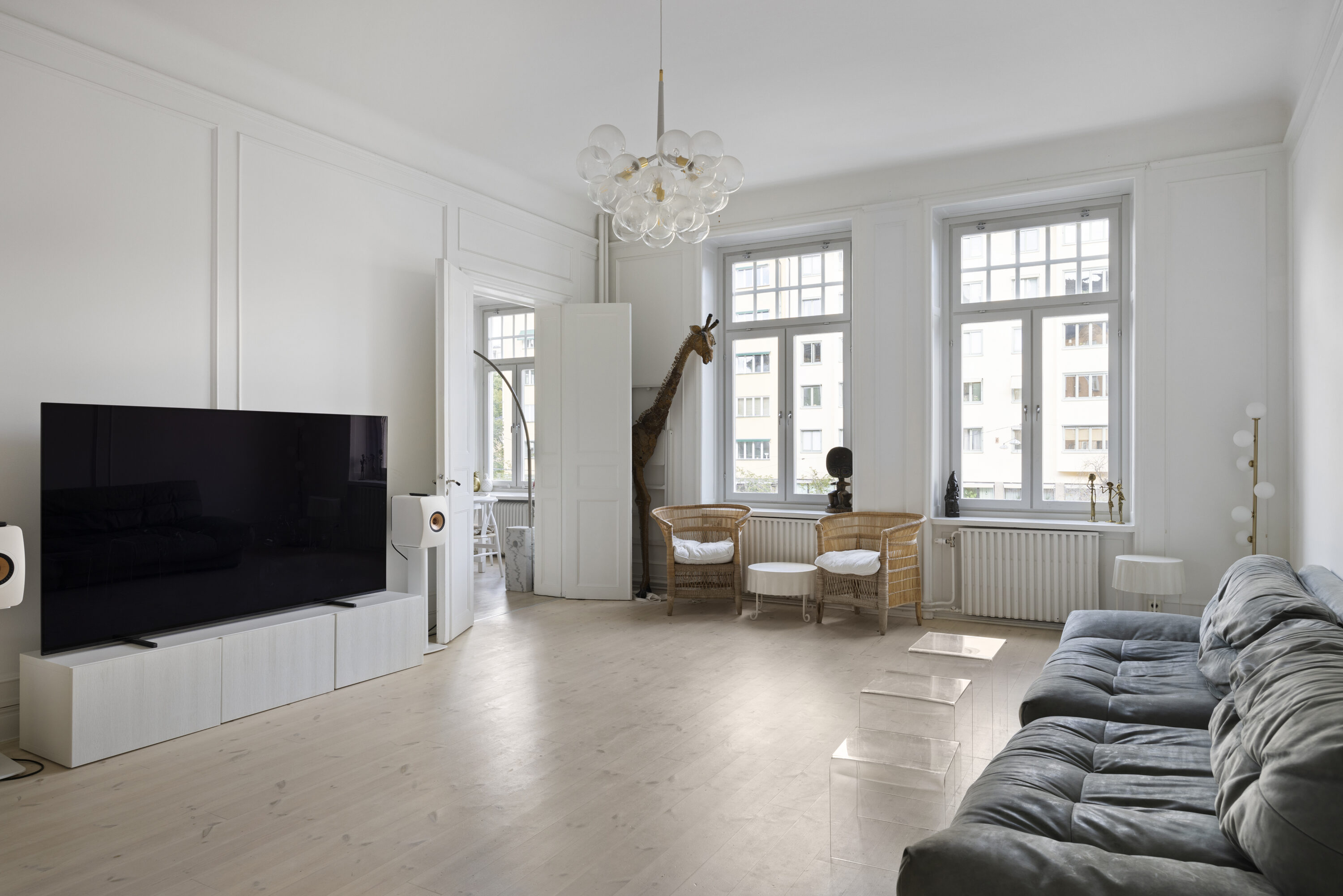 genomgående charmiga originaldetaljer såsom högt till tak, stora fönsterpartier, djupa