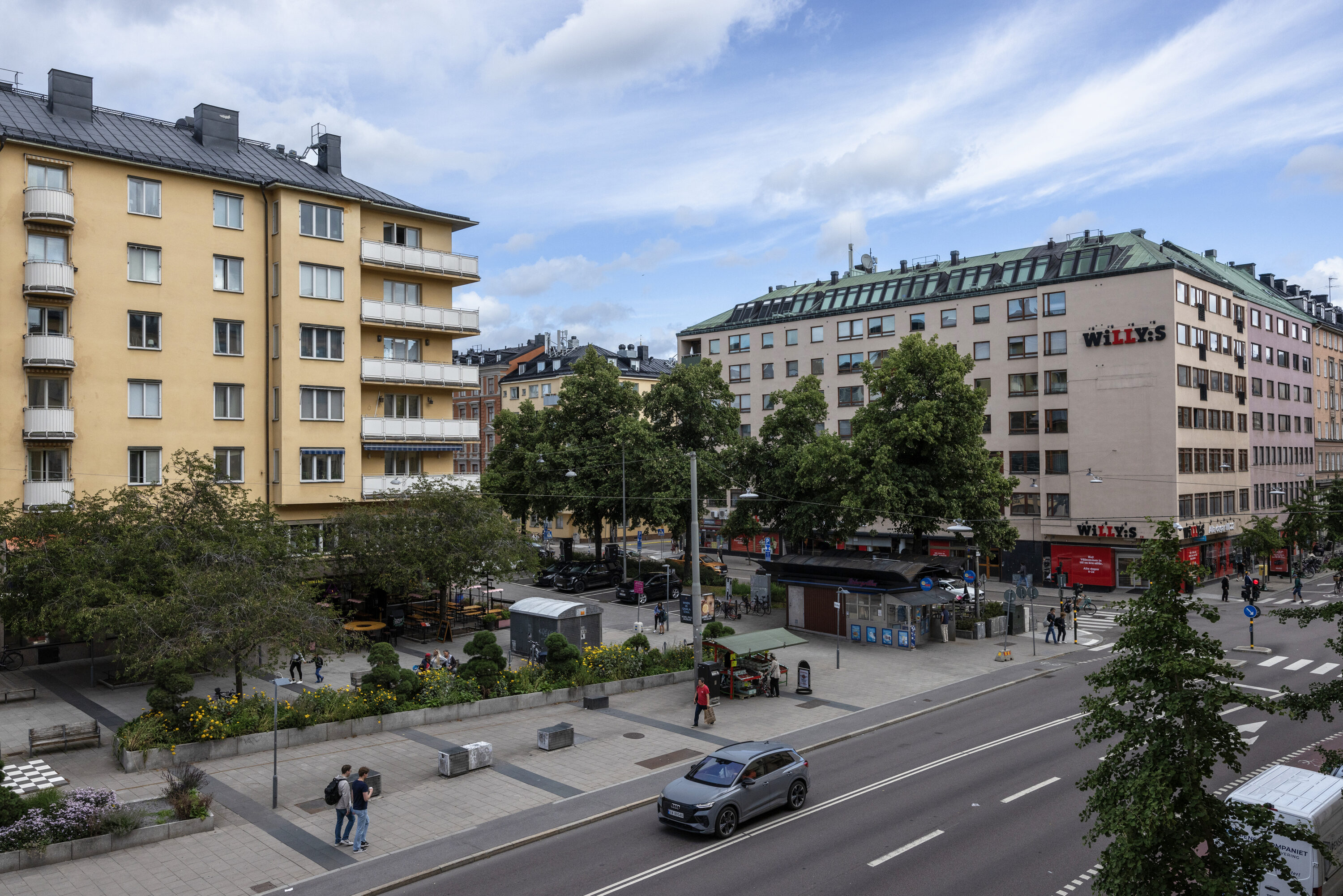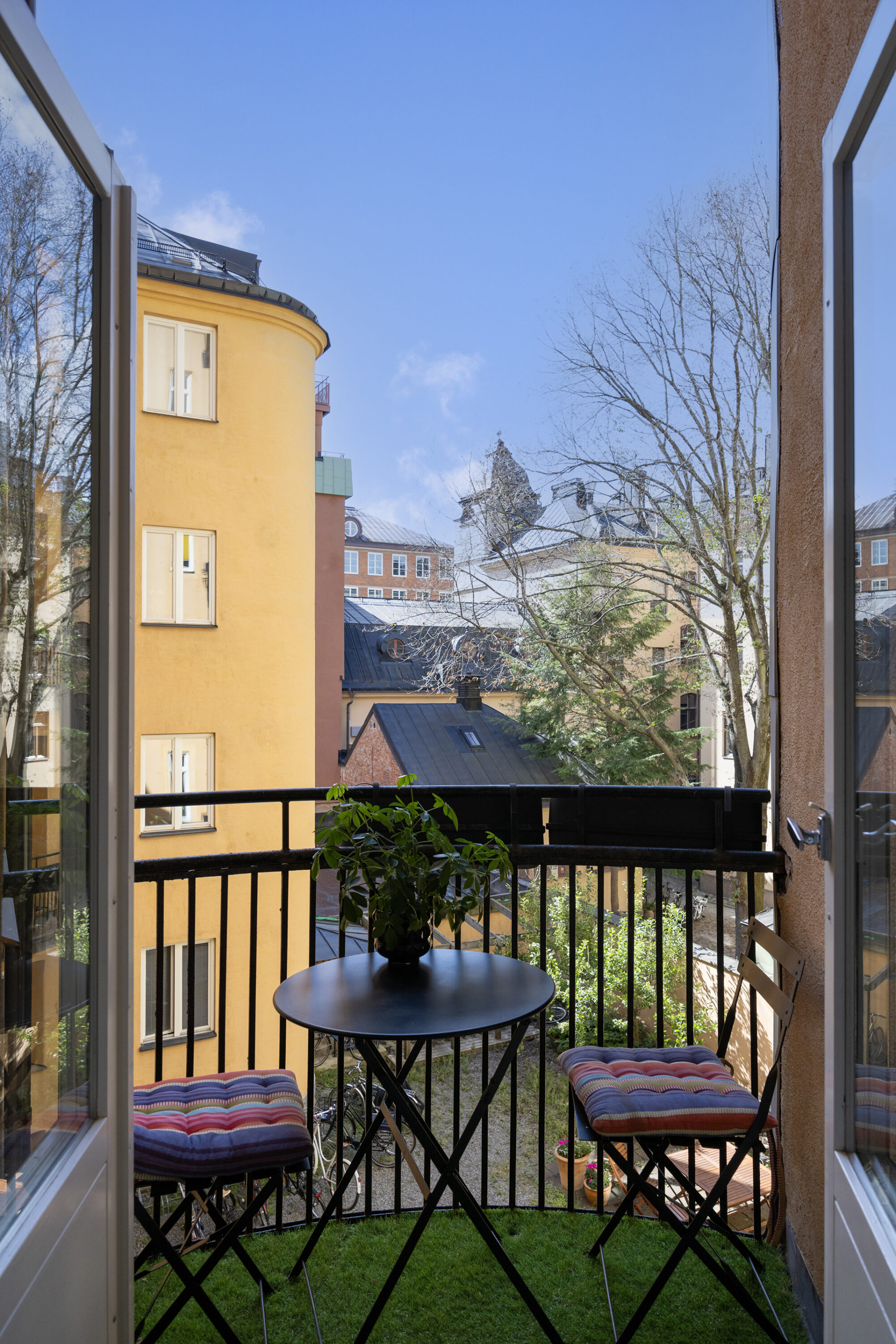 Här bor du mitt på pulserande Hornsgatan men med lugnet från höjden ovanför gatan.