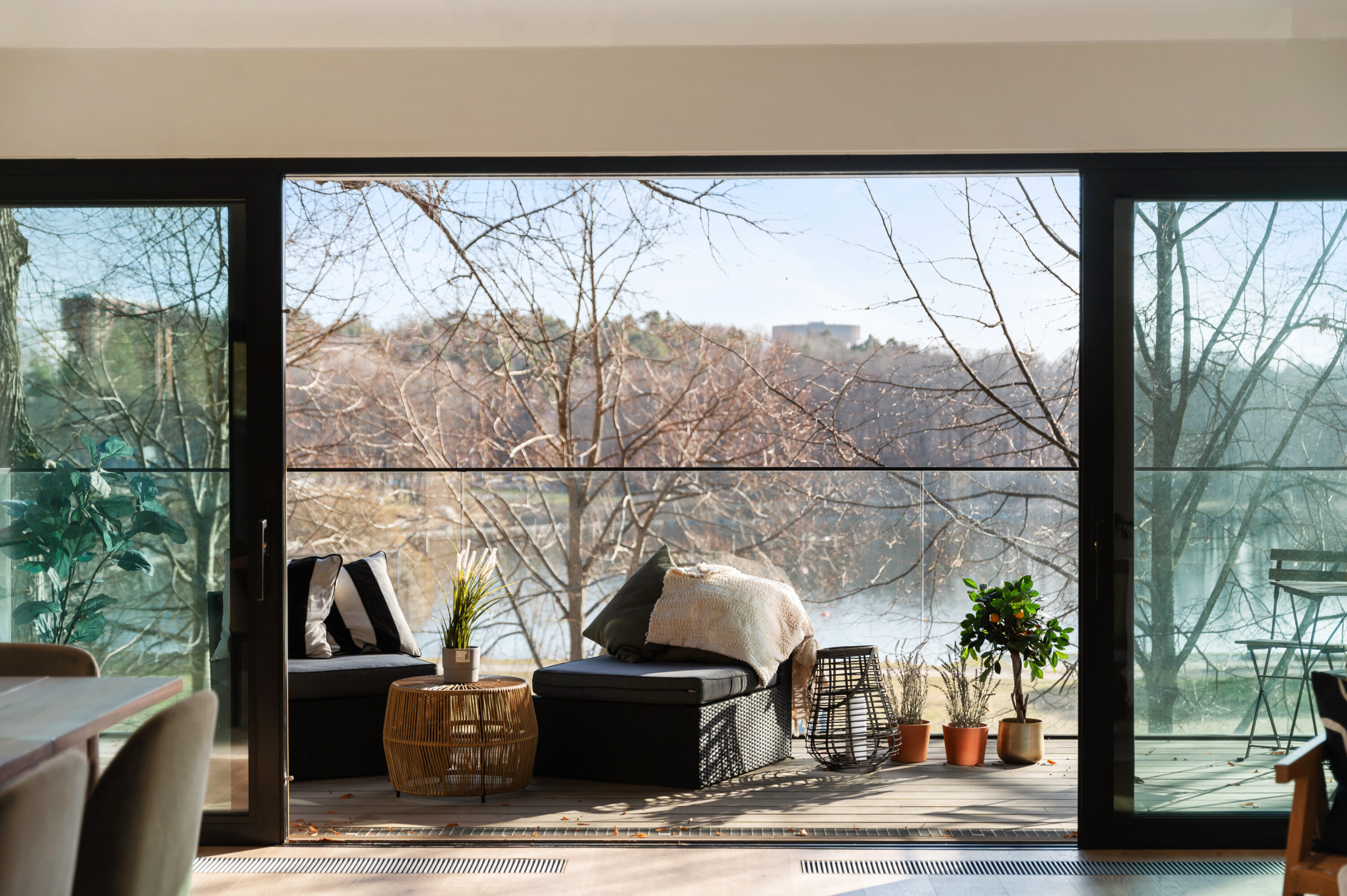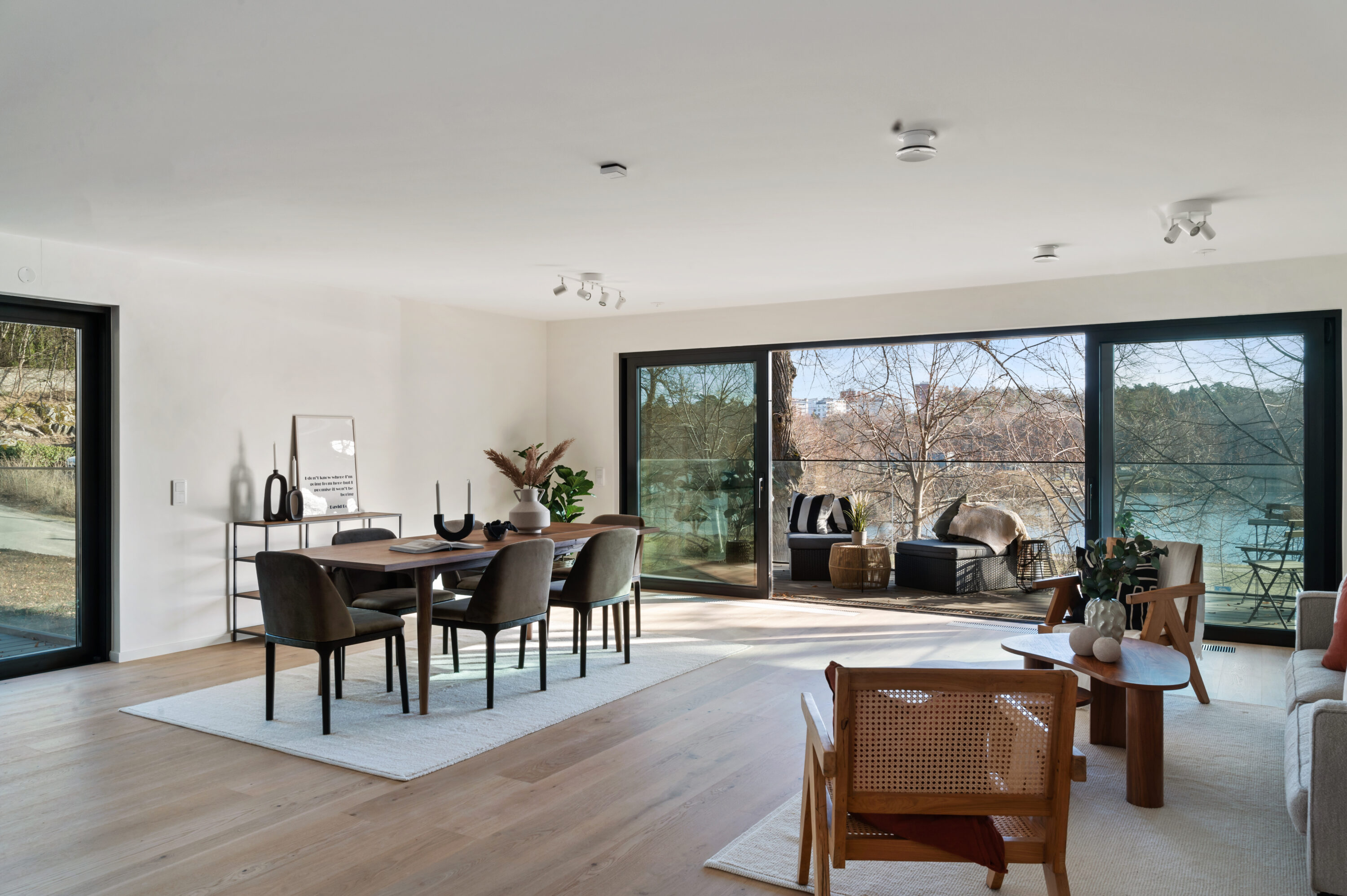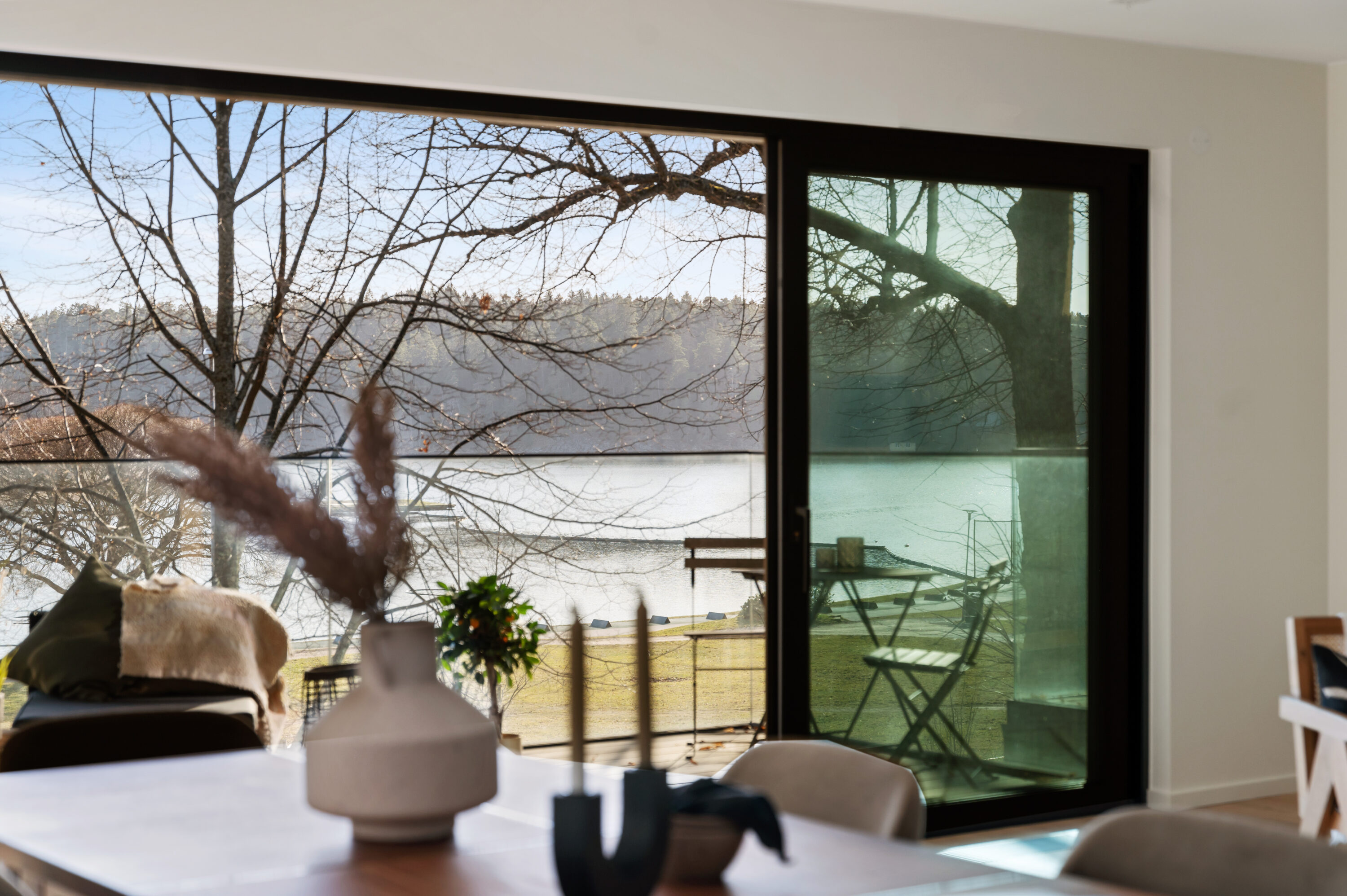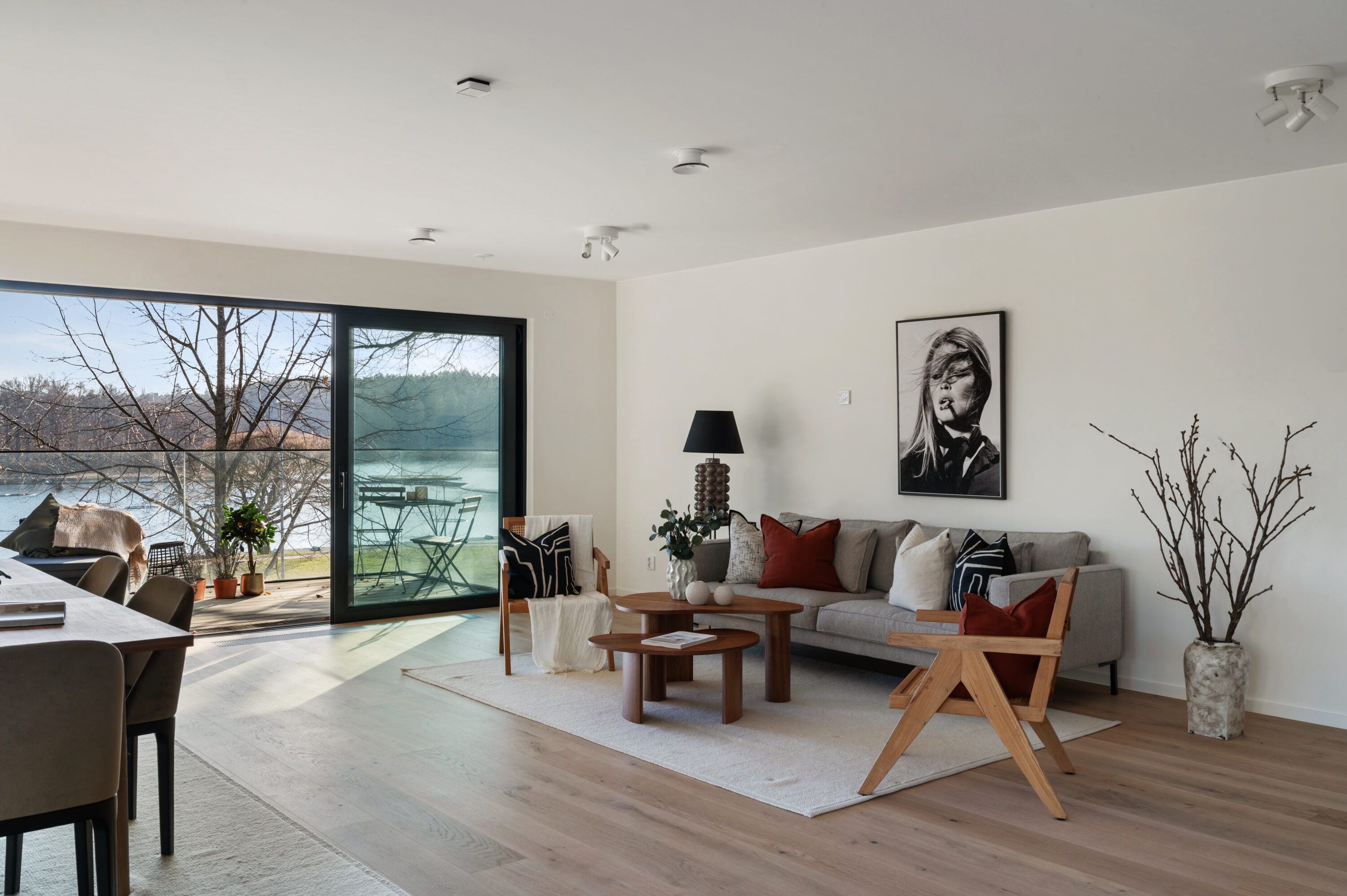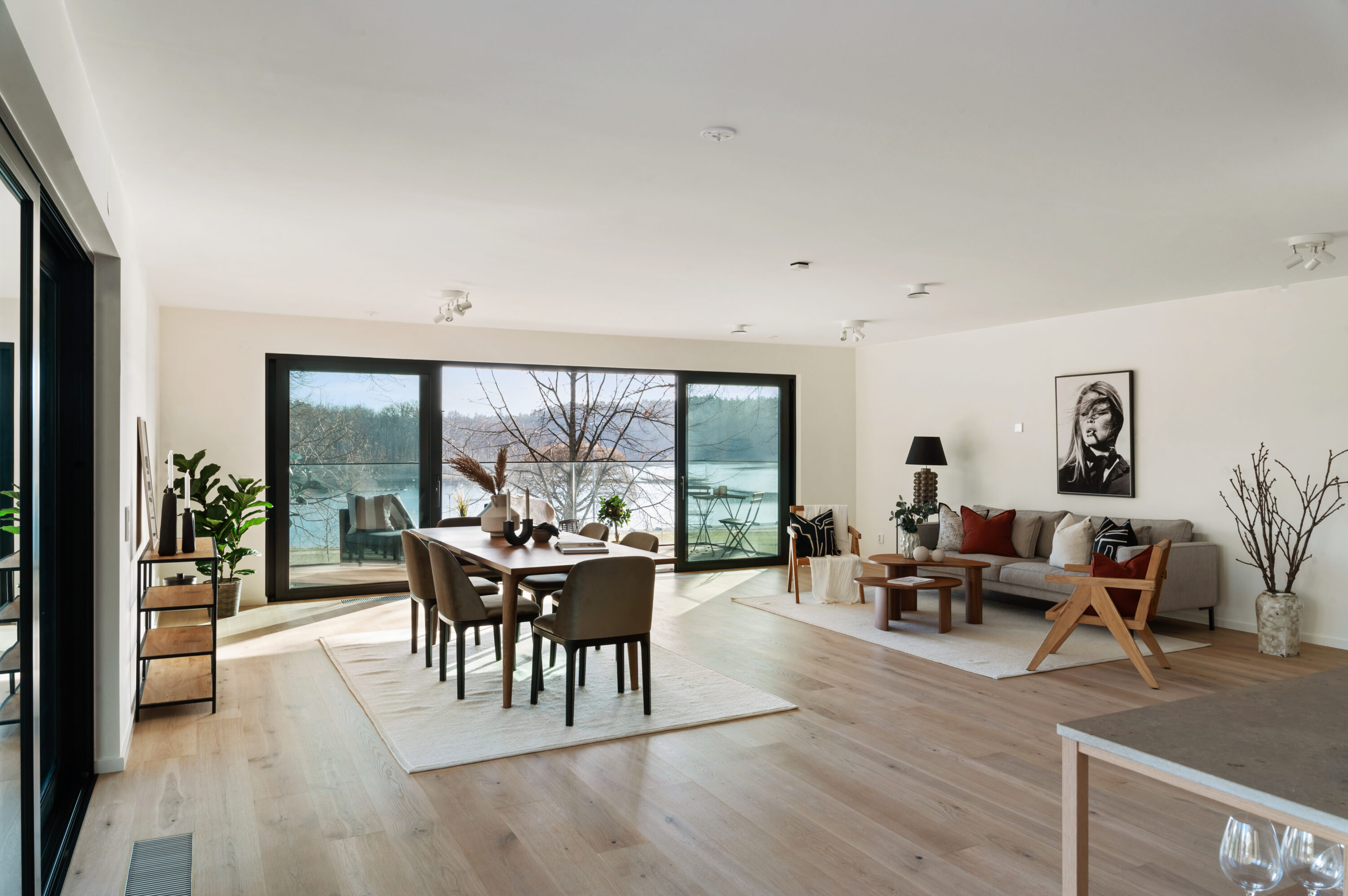 med strålande sjöutsikt. Stora glaspartier ger ett fantastiskt ljus. En riktig härlig