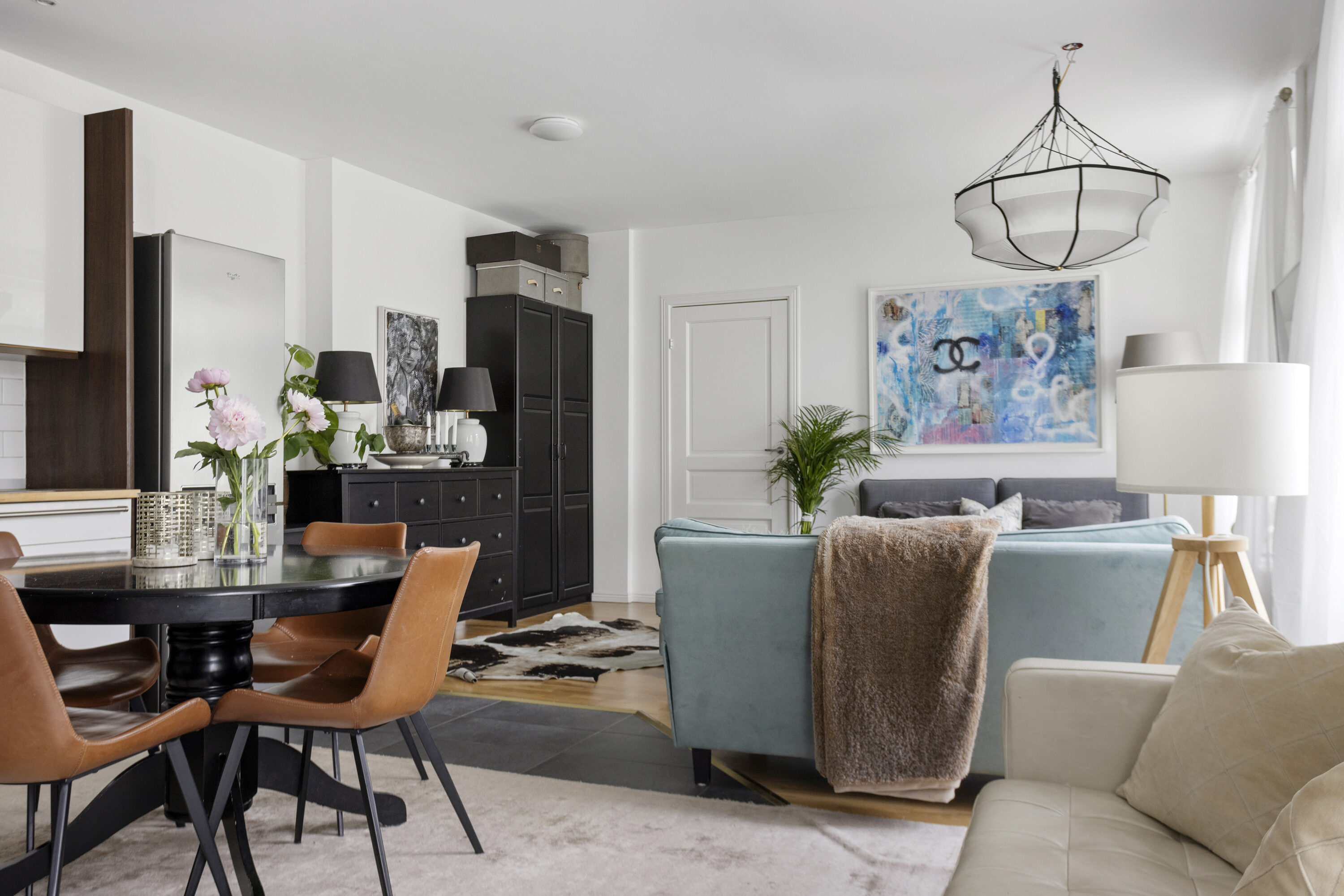 öppen planlösning med köket samt en trevlig uteplats som ger extra utrymme för avkoppling