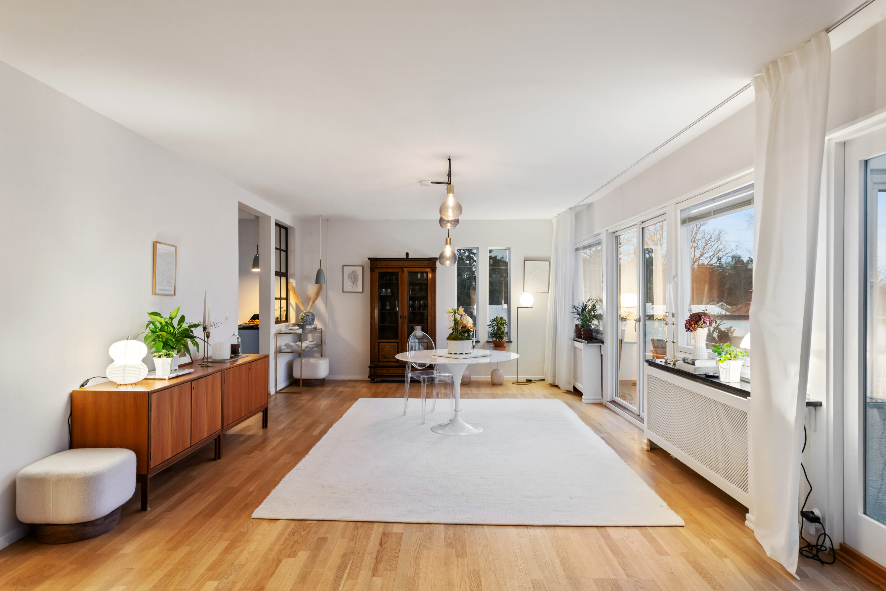 Charmigt och rymligt hus på Sturevägen i Stocksund uthyres möblerat Nu finns möjlighet att hyra ett smakfullt och välplanerat hus om ca 250 kvm på attraktiva Sturevägen i Stocksund. Huset erbjuder generösa ytor och en harmonisk kombination av modern funktionalitet och klassisk stil. Det hyrs ut fullt möblerat och är redo för inflyttning. Bostaden har en ljus och välkomnande entré som leder vidare till stora sociala ytor med öppen planlösning. Här finns flera sällskapsrum med vackra trägolv, stora fönsterpartier och en mysig eldstad som skapar en varm atmosfär. Köket är modernt och fullt utrustat med gott om arbetsytor, matplats och stilrena detaljer, perfekt för både vardag och bjuda över vänner. Huset rymmer flera sovrum i olika storlekar, alla med bra förvaring och lugna färgsättningar. Det finns två fräscha badrum, varav ett med badkar och ett med dusch, samt en separat tvättstuga. För extra komfort finns även en bastu och ett relaxrum. En av bostadens höjdpunkter är den stora inglasade verandan som fungerar som ett extra vardagsrum året runt, med utsikt över den lummiga trädgården. Här finns även en terrass för utomhusmiddagar och avkoppling. Tomten är insynsskyddad och erbjuder gott om plats för lek och umgänge. Till huset hör garage och uppfart med plats för flera bilar. Läget är optimalt med närhet till vatten, natur, skolor och goda kommunikationer in till Stockholm city. Detta är ett hem för dig som söker ett rymligt, välmöblerat och trivsamt boende i ett av Stockholms mest eftertraktade områden.