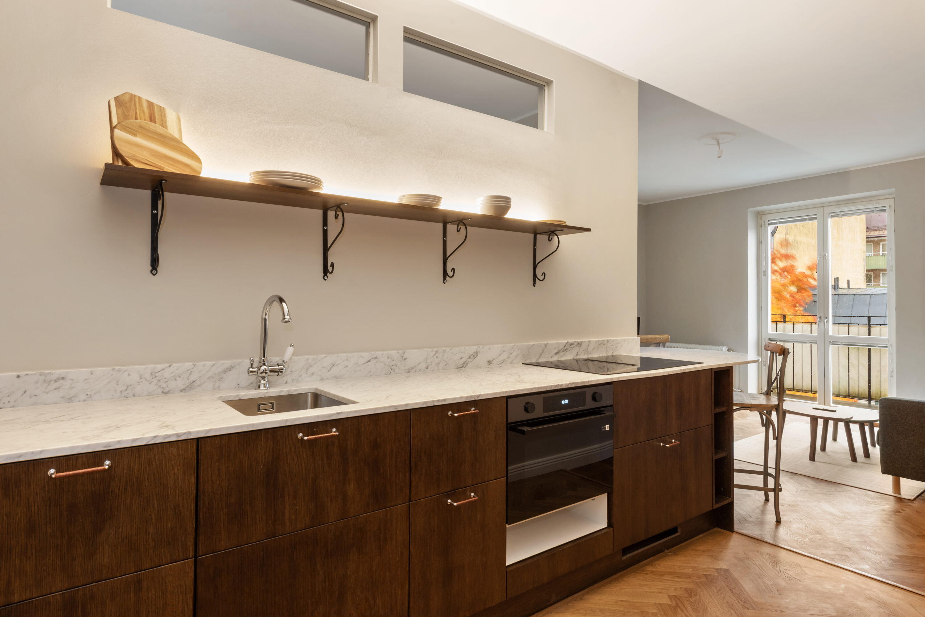 Nyrenoverad och väldisponerad 2:a om 40 kvm på Sveavägen med balkong och hiss. Lägenheten håller mycket hög standard med fiskbensparkett, sobra väggkulörer och genomtänkta materialval. Socialt kök i mörkt trä med marmorbänk, integrerad belysning, induktionshäll och ugn, samt bardel för snabba frukostar. Vardagsrummet rymmer soffa, tv‑möbel och matplats och har utgång till en solig balkong mot gård. Sovdel med plats för dubbelsäng samt praktisk klädkammare för extra förvaring. Helkaklat badrum i hotellkänsla med stora stenplattor, takdusch och handdusch samt kommod med spegelskåp. Välkomnande hall med gott om avhängning. Här bor du centralt med närhet till allt city har att erbjuda samt utmärkta kommunikationer runt knuten.